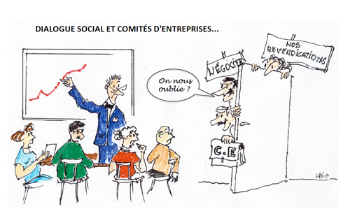 Lorsqu’on parle de dialogue social, on considère les relations entre les partenaires sociaux (négociations, consultations, ou simples échanges d’informations) au niveau du pays, des branches professionnelles ou de l’entreprise. 72 % des élus disent que le dialogue social existe avec les directions et le trouvent satisfaisant, et 83 % jugent qu’il n’y a pas d’écoute de la part du pouvoir dans les projets de loi touchant à l’économie et à l’entreprise.