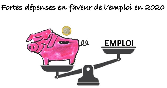 - Les dépenses en faveur des incitations à l’embauche diminuent de 2 % pour atteindre 73,2 milliards d’euros en 2020.