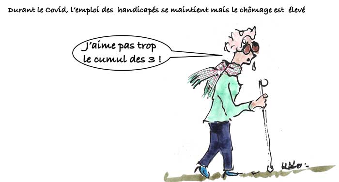 Fin décembre 2020, 476 853 adultes handicapés sont demandeurs d’emploi, soit 7,8 % des chômeurs et leur taux de chômage est toujours le double du taux général. Cependant, ce nombre est en baisse de 3,8 % sur un an, soit -20 000 demandeurs d’emploi handicapés, alors qu’il y a eu 284 000 destructions d’emploi en 2020. C’est en cela que l’on peut dire que le pire a été évité.