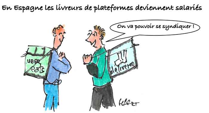 Pour comprendre la loi, il faut remonter au mois de septembre 2020 quand le Tribunal suprême espagnol, saisi par les syndicats et le Parti communiste espagnol, édicte que les livreurs n’étaient pas des autonomes indépendants mais des travailleurs. S’en est suivie une période de négociation entre les partenaires sociaux espagnols interprofessionnels sous l’égide du ministère du Travail. Cette négociation a abouti à un accord en mars 2021 signé du côté syndical par les Commissions Ouvrières (CC OO) et l’UGT (Union générale des travailleurs) et côté patronal par la CEOE (équivalent du Medef) et Cepyme (CPME). Une signature unanime. C’est cet accord qui a été repris par la loi. Les entreprises disposent de 3 mois pour régulariser les situations des salariés.