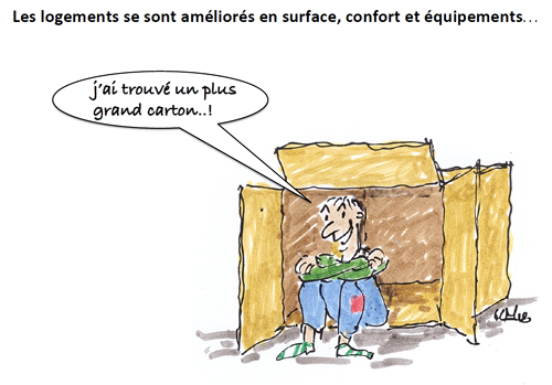 Les conditions de logement des Français en termes d’espace, de confort et d’équipement ne cessent de s’améliorer. Un Français dispose en moyenne de 40 mètres carrés dans son logement contre 23 mètres carrés en 1970. Néanmoins les évolutions récentes révèlent des tensions croissantes dans l’accès et les conditions de logement autour de quatre points principaux :