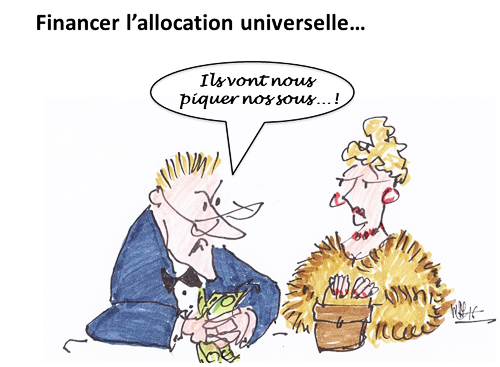 Que propose-t-elle ? « Tout individu quel que soit son âge, sa situation financière, indépendamment du travail, doit recevoir une dotation inconditionnelle assurée par l’État, afin d’assurer ses besoins primaires ». Cette allocation modeste doit permettre à chacun de choisir son emploi et d’avoir le temps de s’investir dans des activités de citoyenneté. Une allocation permettant d’allier responsabilité individuelle et justice sociale. Lutter contre la pauvreté et se libérer du travail aliénant ?