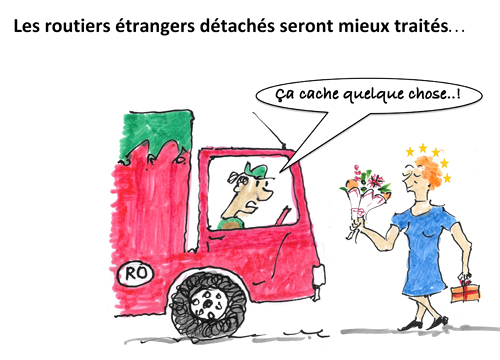 Il prévoit l’application systématique du statut de travailleur détaché pour les opérations dites de « cabotage » (opérations intérieures dans un pays pour des livraisons internationales). Entre deux séries de « cabotage », les transporteurs devraient respecter une « période de carence » minimale de 5 jours, afin que cette activité ne devienne pas quasi permanente. Le repos hebdomadaire normal devra être pris en dehors de la cabine. Des exceptions sont prévues pour les « opérations bilatérales », c’est-à-dire des livraisons simples d’un pays à un autre, avec deux opérations en plus (de chargement ou déchargement) acceptées sur le chemin. Un conducteur devrait pouvoir retourner dans son pays d’établissement au moins toutes les 4 semaines, sauf cas particuliers.