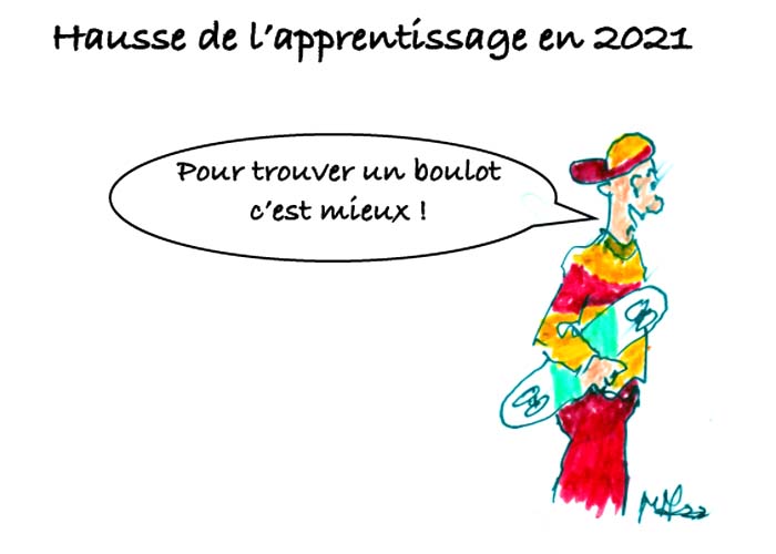 La loi Avenir professionnel de septembre 2018 donne la responsabilité du développement de l’apprentissage aux branches professionnelles, au lieu des Régions antérieurement, rend facile la création de centres de formation d’apprentis, recréant un mouvement de développement. La création d’une aide exceptionnelle aux entreprises embauchant des apprentis face à la pandémie, depuis la mi-2020, assure cet essor exponentiel.