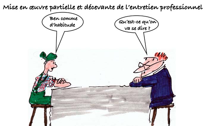 De plus, l’entretien professionnel est souvent confondu avec l’entretien annuel d’évaluation du travail réalisé, et collé à lui. L’évolution professionnelle y est abordée (80 %) mais peu d’entretiens débouchent sur de la formation, qui est évoquée surtout s’il y a des projets internes à l’entreprise, très peu en cas de projets de mobilité externe.
