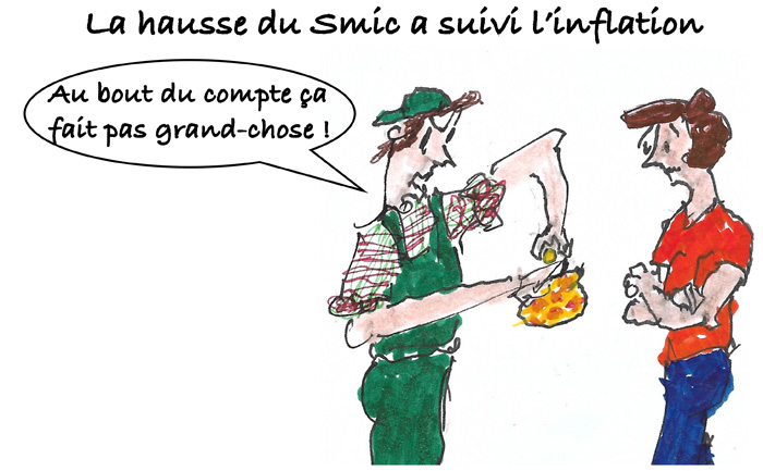 Depuis janvier 2021, le SMIC a augmenté de 12,4 % et l’inflation a été de 12,5 %, soit un quasi-maintien de son pouvoir d’achat alors que le salaire moyen a baissé de 2,5 %.