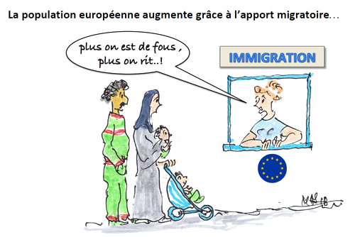 L’augmentation de 1,1 million au cours de l’année 2017 est donc due à l’apport du solde migratoire, sans laquelle la population de l’Union européenne aurait baissé.