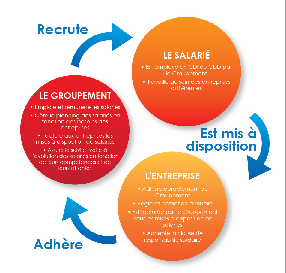 Les groupements d’employeurs ont pour objet de « mettre à disposition des entreprises membres des salariés liés à ces groupements par un contrat de travail ». Ils peuvent également apporter à leurs membres leur aide ou leur conseil en matière d’emploi ou de gestion des ressources humaines.