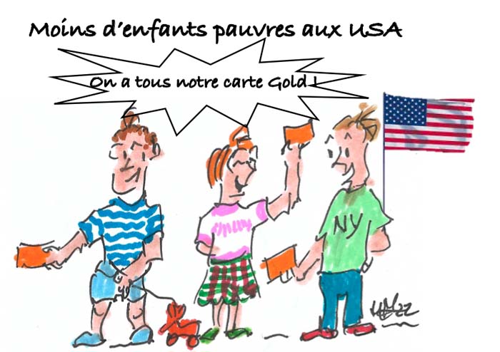 Le taux de pauvreté des enfants américains après transferts sociaux fiscaux a donc chuté de 46 % en 2021. Il est de 5,2 %. Ce taux est plus faible que celui des adultes en âge de travailler (7,9 %). C’est un mouvement historique amorcé depuis 30 ans. Sur les 2,9 millions d’enfants concernés, 1,2 million sont hispanophones et 716 000 afro-américains. Le taux de pauvreté des enfants noirs a baissé de 6 points à 8,1 % (2,7 % pour les blancs non hispanophones).