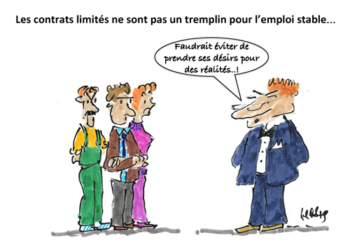 En revanche, si 24 % des salariés du privé en contrats à durée limitée sont en CDI dès l’année suivante et une fois sur 2 chez le même employeur, au total seuls 47 % sont en CDI 7 ans plus tard et peu souvent (1/5) chez le même employeur. Et beaucoup des salariés en contrats limités (43 %) ont connu des périodes de chômage indemnisé.