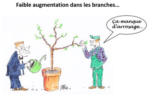 Un ralentissement du salaire mensuel de base dans plus de la moitié des branches : Le salaire mensuel de base est défini comme le salaire hors primes sauf pour les primes liées à la réduction du temps de travail, hors avantages en nature. C’est un salaire brut, avant toutes déductions de cotisations obligatoires.