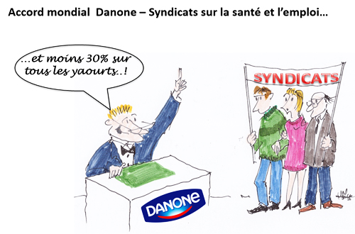UITA : (Union internationale des travailleurs de l’alimentation, de l’agriculture, de l’hôtellerie-restauration, du tabac et des branches connexes). La fédération internationale syndicale est présente dans 126 pays depuis sa fondation en 1920. Elle siège à Genève. Elle est attachée à promouvoir une vie digne pour tous ceux qui plantent, récoltent, transforment, préparent et servent les aliments dont nous dépendons pour vivre. En 2009, les syndicats de Danone créent le CIC (comité mondial) de 80 membres : Europe, Argentine, Mexique, Canada, USA, Russie. Il a été décidé que l’Arabie Saoudite et la Chine ne seraient pas représentés car ces pays ne respectent pas les conventions de l’OIT. Les non syndiqués peuvent participer aux réunions (ex : République Tchèque, RU, Indonésie…).