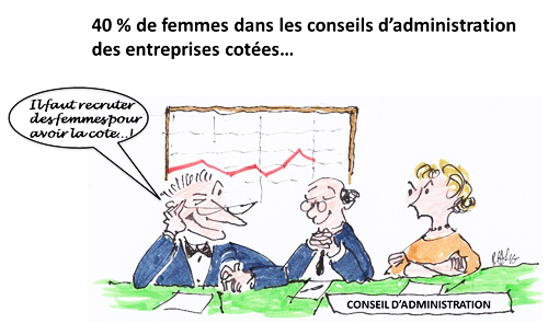 Le 27 janvier 2011 était promulguée la loi Copé-Zimmermann (LR) fixant un seuil minimal de 40% de femmes ou d’hommes dans les conseils d’administration et de surveillance des grandes entreprises privées et publiques au 1er janvier 2017. Elle fixait un objectif intermédiaire de 20% en 2014. Il a été atteint « sans difficulté », précisent les auteurs, mais « il en va autrement de l’objectif de 40% pour 2017 ».