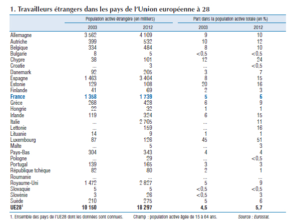 – Contrairement aux discours alarmistes des xénophobes, la proportion d’étrangers dans la population active européenne n’est que de 6% en moyenne.