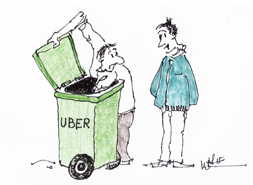 - - L’exemple le plus marquant est celui d’Uber [2], mais dans le même genre on peut citer AirBnb ou d’autres… Pour les personnes concernées, ce n’est pas un emploi, ni un travail déclaré comme indépendant, c’est une activité non régulée, souvent non déclarée fiscalement, qui a attiré nombre de personnes comme complément de revenus. Elle est aussi parfois devenue pour certains une activité plein temps, mais sans règles collectives, …sinon celles posées par l’entreprise numérique. Car cette liberté ressentie individuellement participe en fait à la construction de grandes multinationales du net qui transfèrent entièrement le risque aux individus.