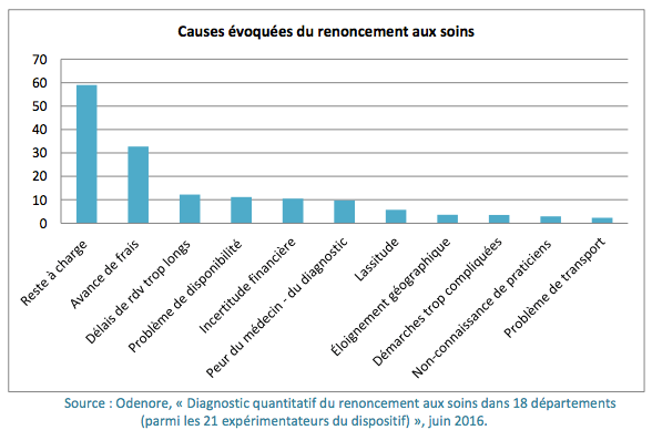 Ils sont avant tout financiers, trois cas sur quatre, mais d’autres causes peuvent intervenir. Une méconnaissance des droits ou la complexité des démarches à effectuer peuvent décourager les assurés, tout comme des délais de rendez-vous parfois très longs ou un éloignement géographique. L’Odenore a identifié « un manque de guidance » : « Je suis perdu. Si on me disait à quelle porte frapper, peut-être que je m’en sortirais mieux. »