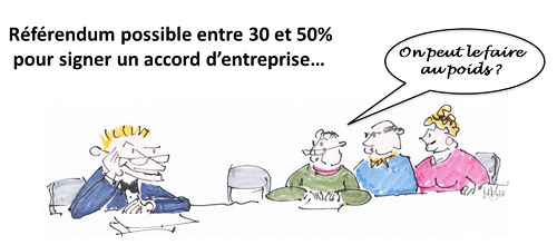 L’autre innovation du recours au référendum suscite plus de questions dans les organisations syndicales. Faut-il donner la parole directement aux salariés alors qu’ils peuvent être soumis à la pression de l’employeur ? Mais, a contrario, ne peut-on pas faire confiance aux salariés en leur garantissant, bien sûr, la confidentialité de leur vote ? Notons, d’une part, que ce référendum ne sera réalisé qu’à l’initiative des organisations syndicales signataires, ce qui évite les manipulations patronales. D’autre part, cette mesure devrait être de nature à éviter les situations de blocage telles qu’on les a connues dans des dossiers récents comme la FNAC par exemple.